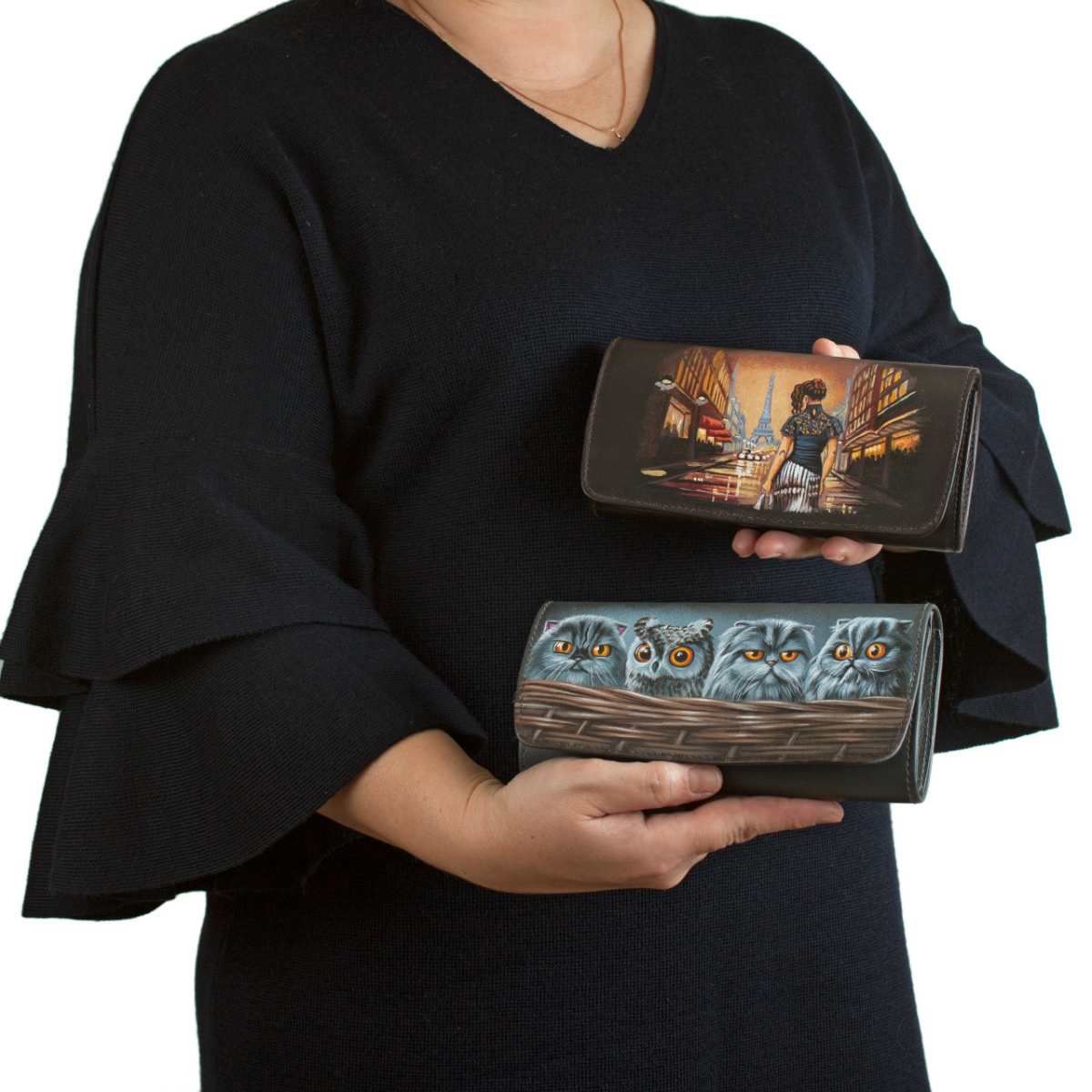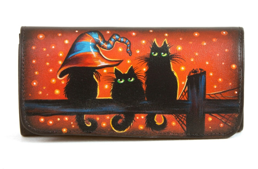 Кожаный женский кошелек с рисунком ручной работы "Три кота" — кожаный кошелек-портмоне с рисунком ручной работы | Купить в Sumnizza