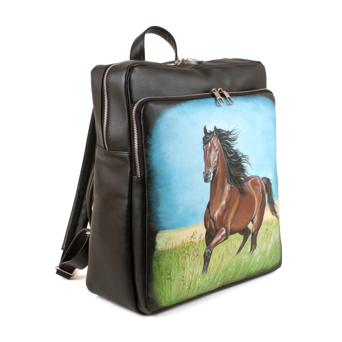 Классический мужской рюкзак с рисунком "Гнедой конь" с рисунком ручной работы на заказ | Купить в Sumnizza