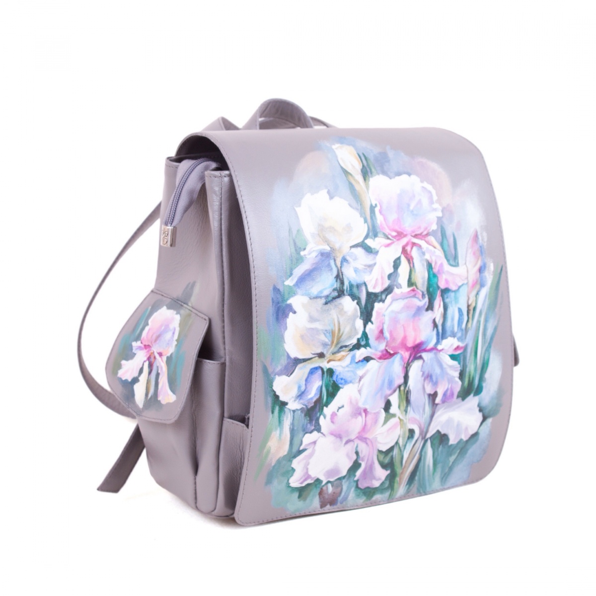 Большой женский рюкзак с росписью "Ирисы" ручной работы на заказ