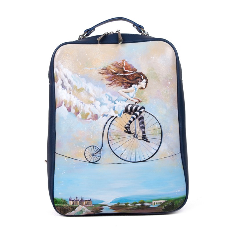 Кожаная сумка рюкзак с принтом "Девушка на канате" ручной работы на заказ
