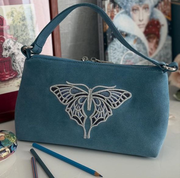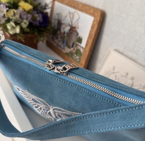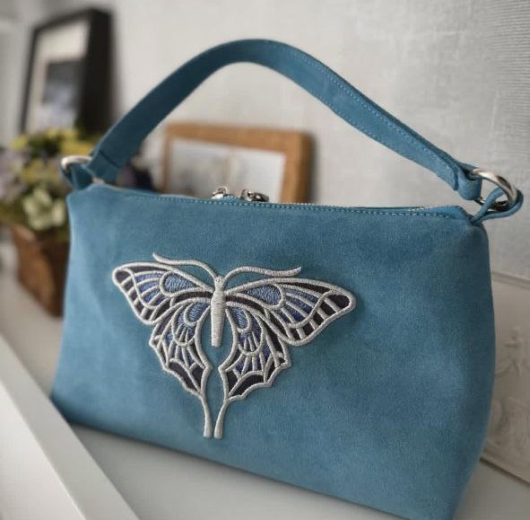 Главная изюминка модели — изящная вышивка в виде бабочки, выполненная вручную. Она делает каждый экземпляр уникальным, добавляя образу нотку романтики и индивидуальности. В отличие от стандартных кожаных сумок багет, наша модель из замши дарит совершенно иные тактильные ощущения: она невероятно нежная, легкая и эффектная.