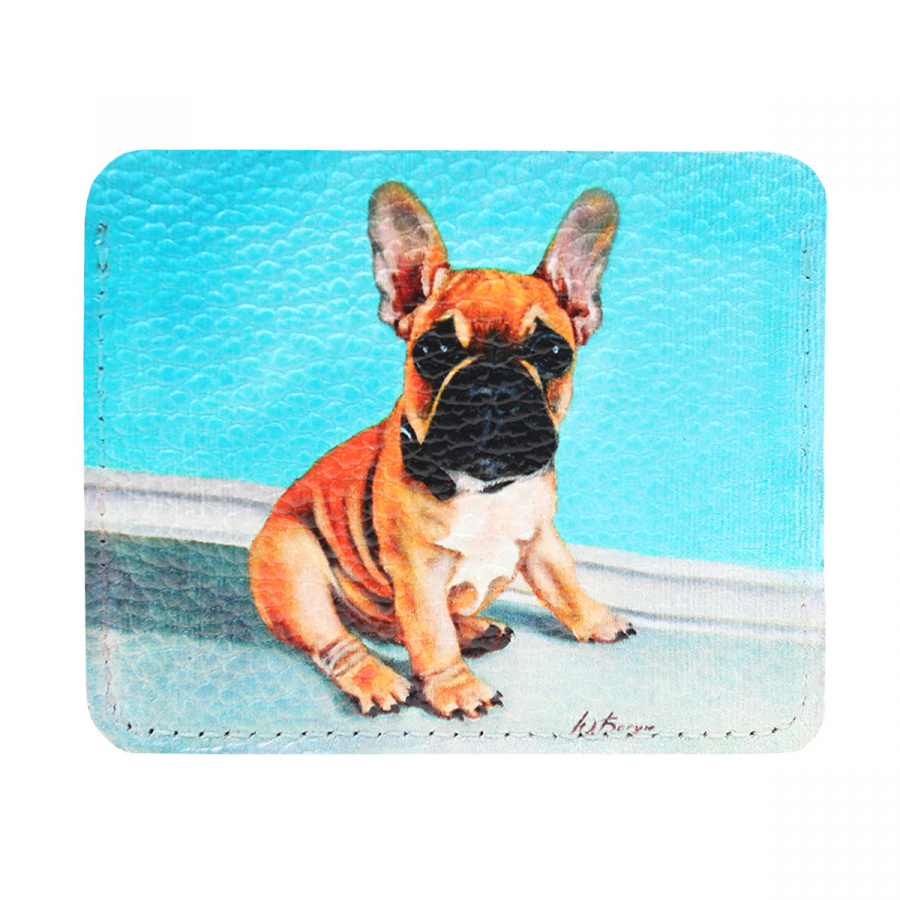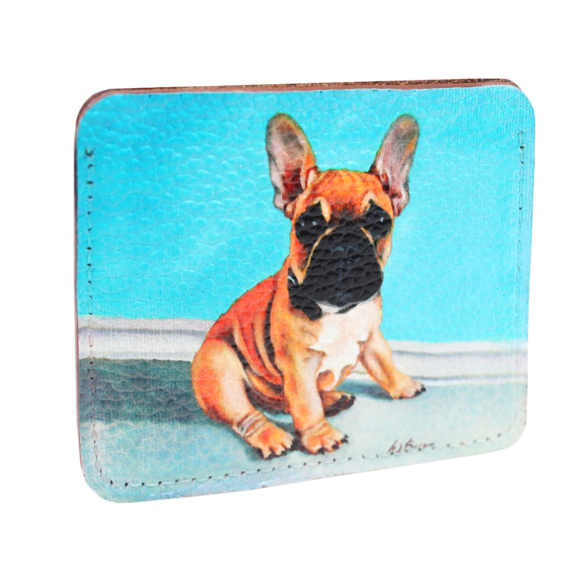 Холдер из кожи для карт и купюр с фотопринтом "Бульдожка"
