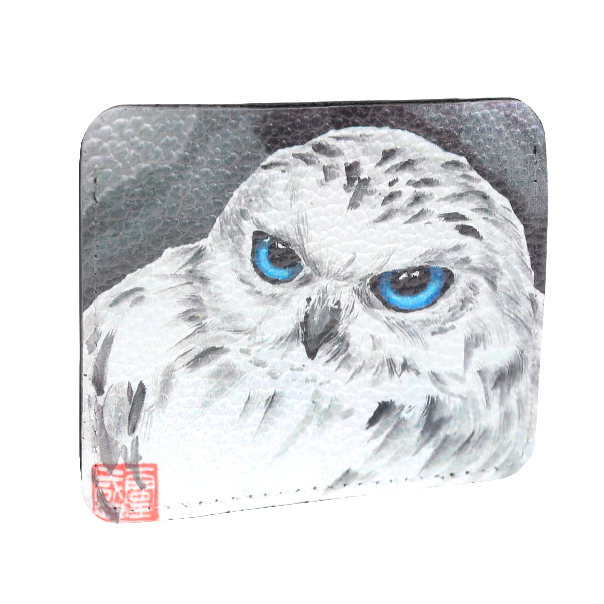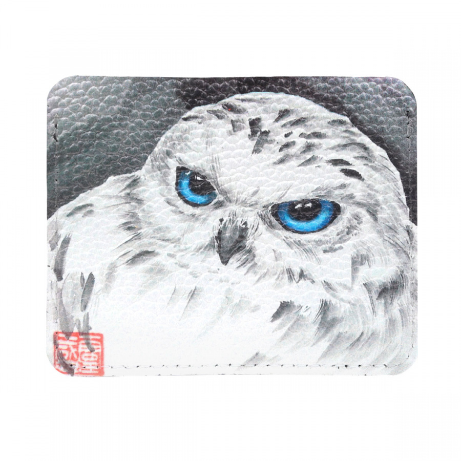 Холдер из кожи для карт и купюр с принтом "Белая сова"