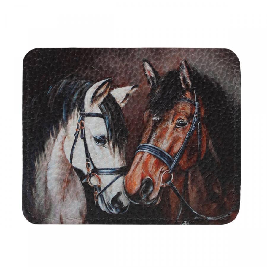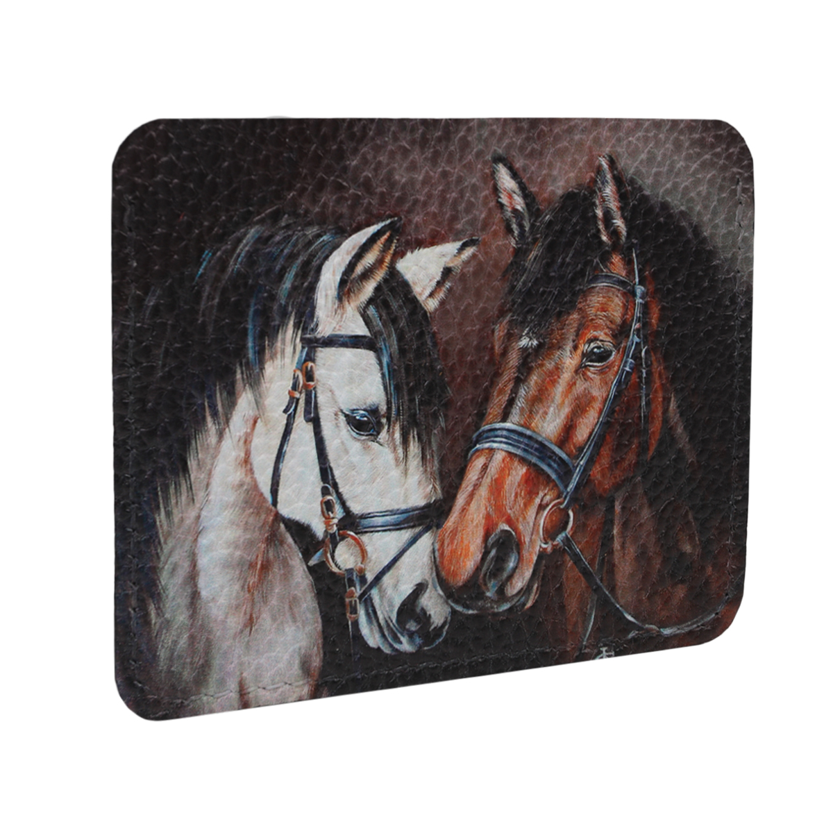 Холдер из натуральной кожи для карт и купюр с принтом "Две лошадки"