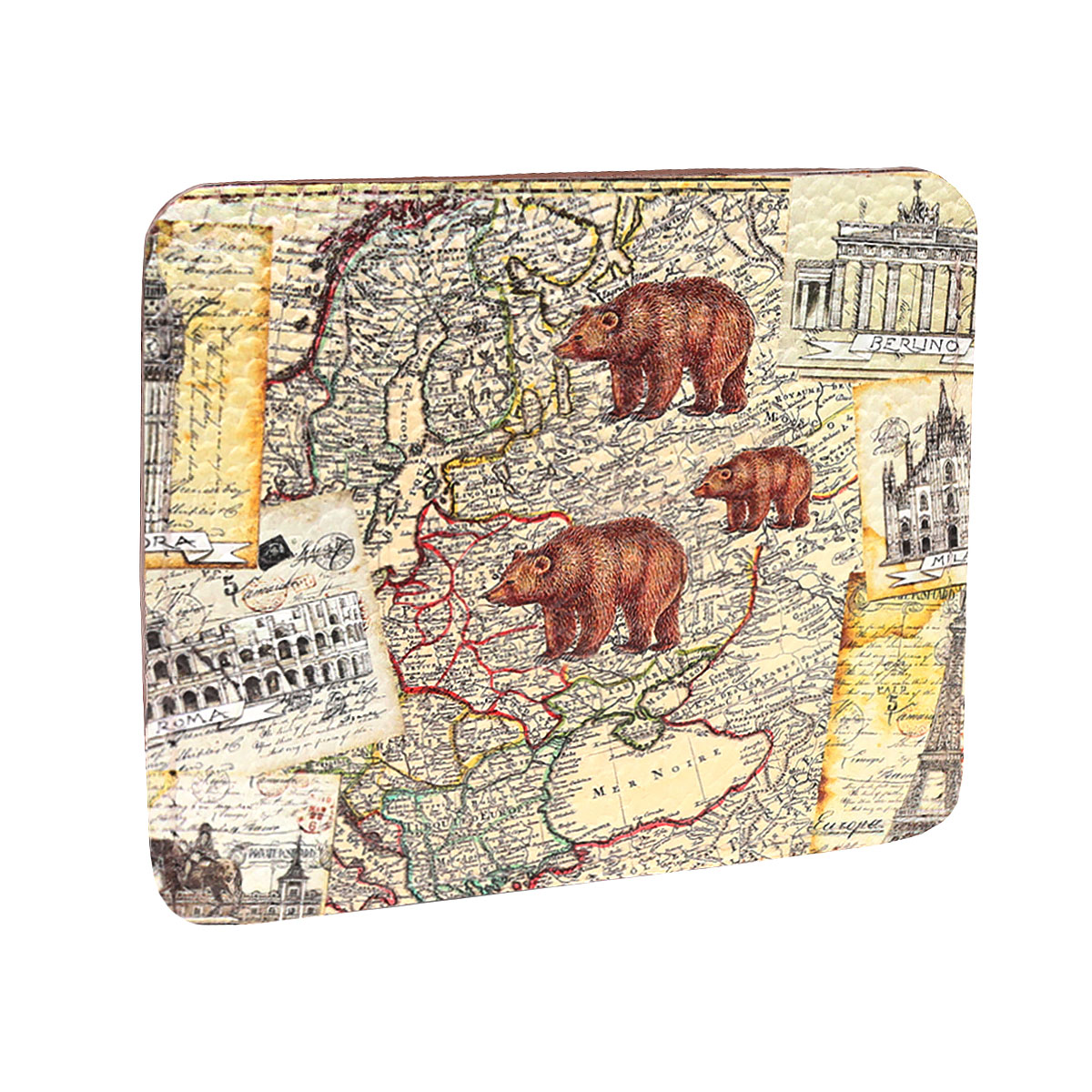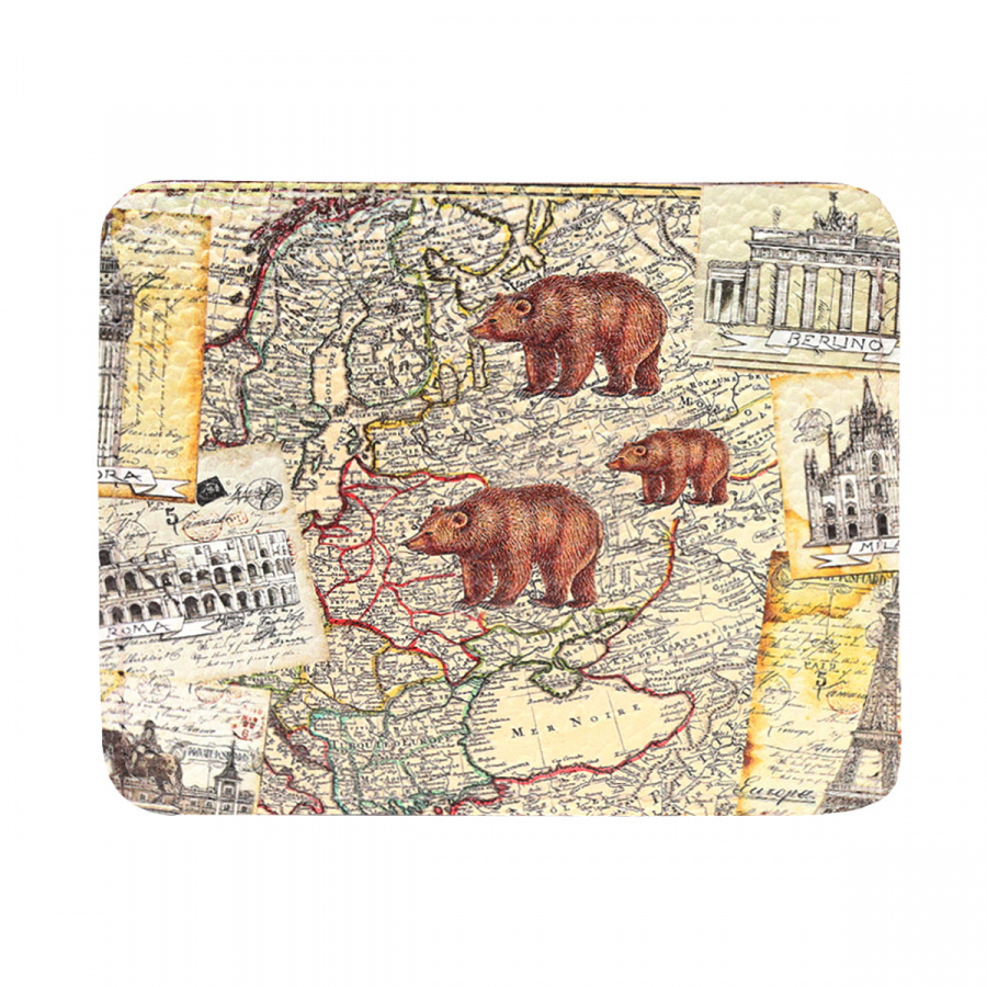 Кожаный кард-холдер для карт с принтом "Карта мира с медведем" — кожаный конверт для карты ручной работы | Купить в Sumnizza