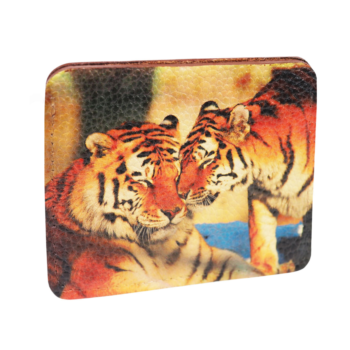 Кожаный холдер для карт и купюр с фотопринтом "Семейство тигров"