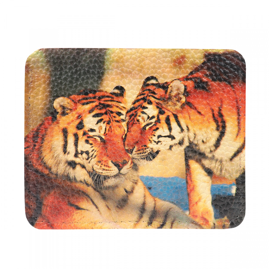 Кожаный холдер для карт и купюр с фотопринтом "Семейство тигров" — кожаный конверт для карты ручной работы | Купить в Sumnizza