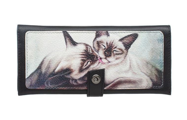 Женский кошелек с принтом кошек "Сиамские близнецы" ручной работы на заказ