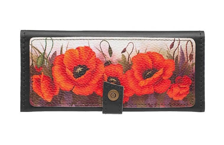 Женский кожаный кошелек-портмоне с принтом "Алые маки" ручной работы на заказ | Купить в Sumnizza