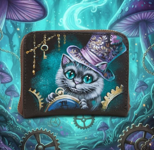 Стильный женский кошелек  с рисунком ручной работы "Чешир" - кожаный женский кошелек-портмоне ручной работы с рисунком на заказ |  Sumnizza фото 3
