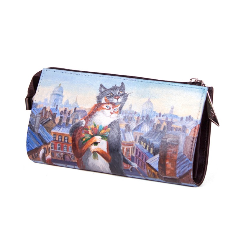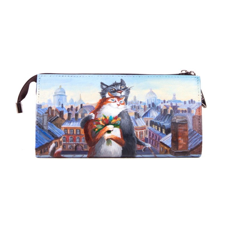 Женский кошелек с ручной росписью "Коты на крыше"