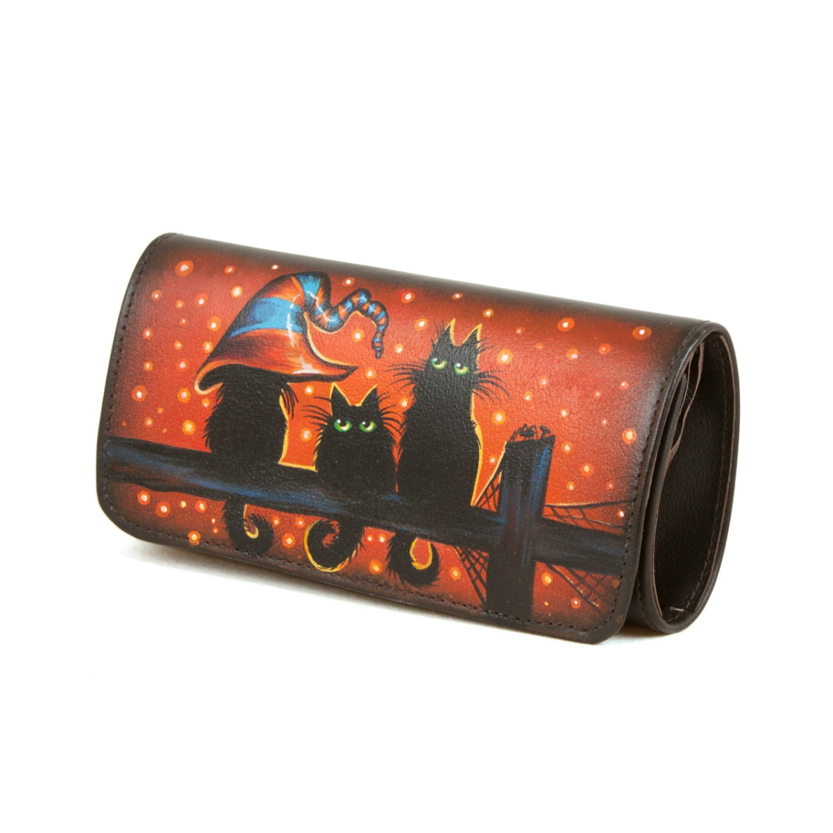 Кожаный женский кошелек с рисунком ручной работы "Три кота" ручной работы на заказ | Купить в Sumnizza