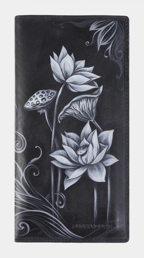 Кожаное портмоне с росписью "Цветки лотоса"
