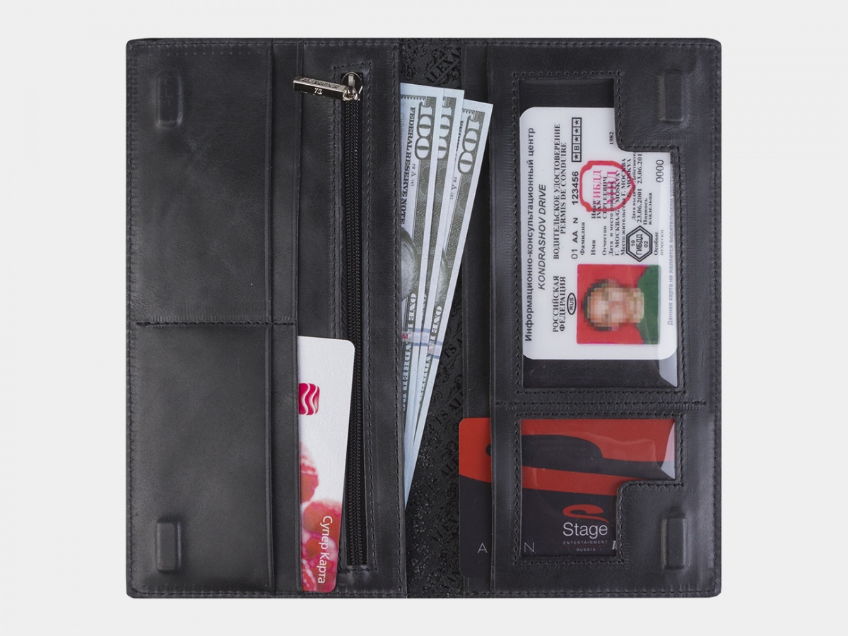 • Удобно использовать — вмещает карты и купюры