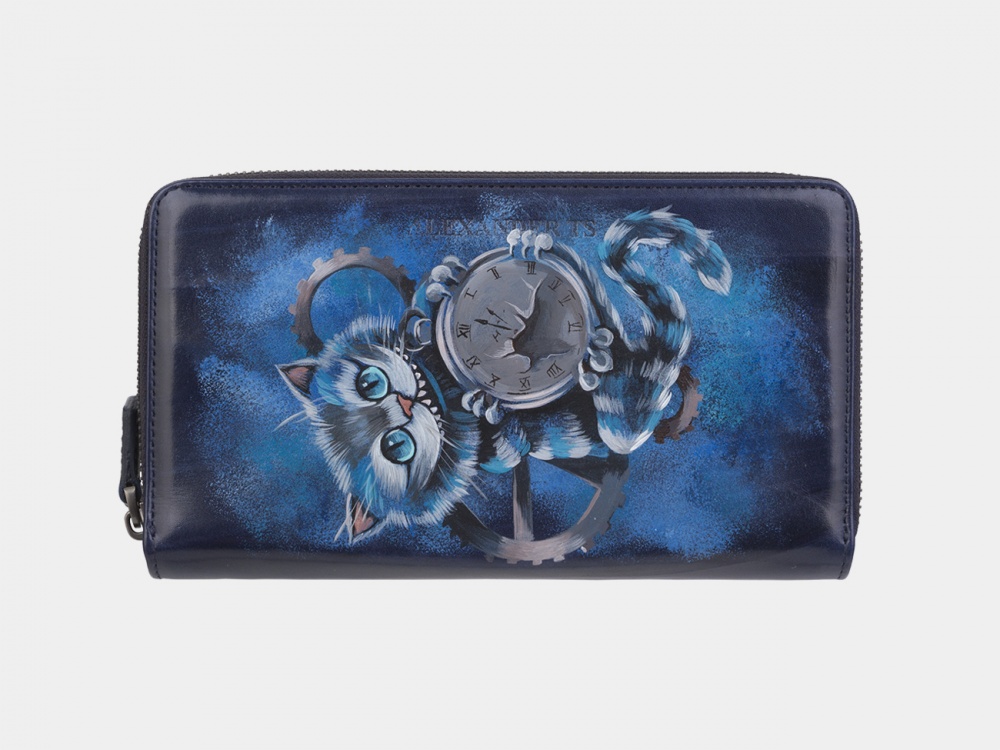 Кожаный кошелек под документы и для телефона с рисунком Чеширского кота ручной работы - кожаный женский кошелек-портмоне ручной работы с рисунком на заказ |  Sumnizza