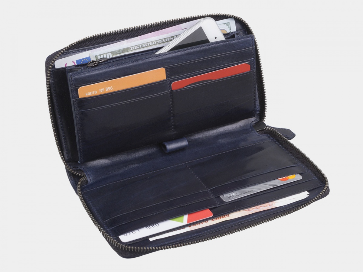 • Продуманная конструкция — полностью раскрывающийся верх кожаного кошелька обеспечивает лёгкий доступ к содержимому