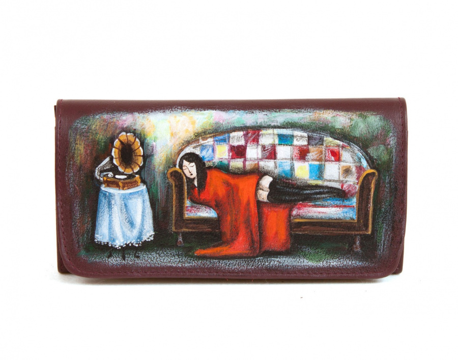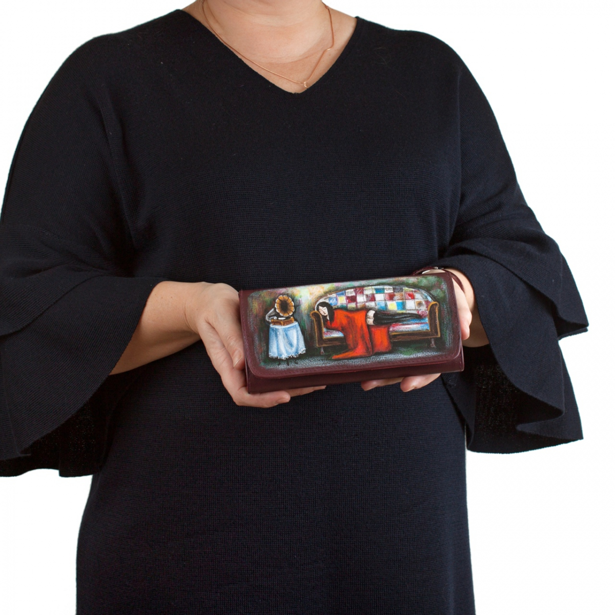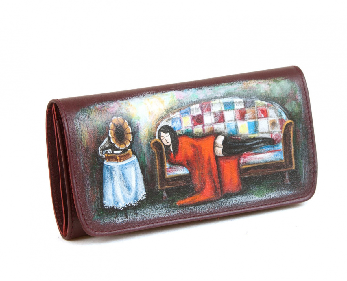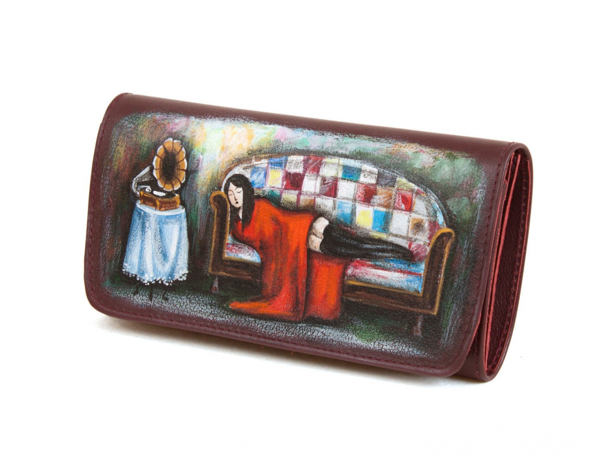 Женский бумажник с росписью "Девушка на диване" ручной работы на заказ | Купить в Sumnizza