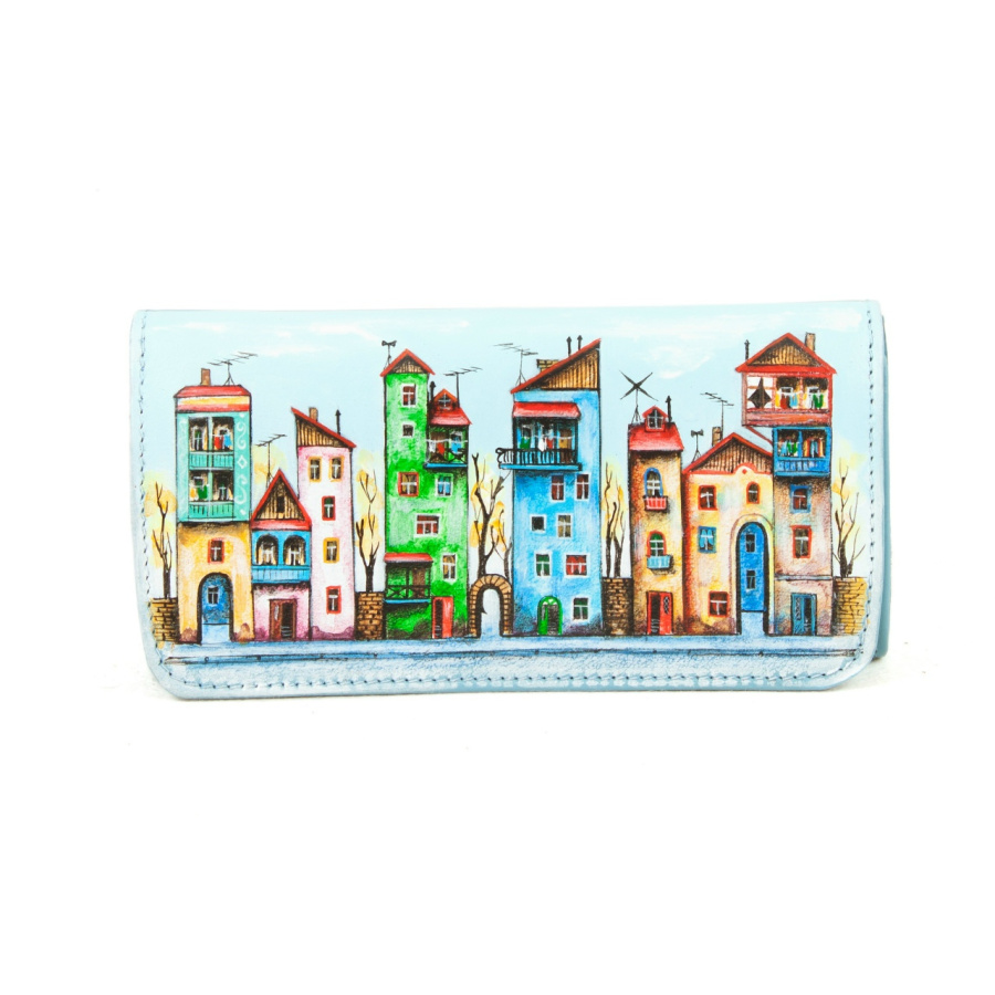 Стильный женский кошелек с рисунком ручной работы "Городок" ручной работы на заказ | Купить в Sumnizza