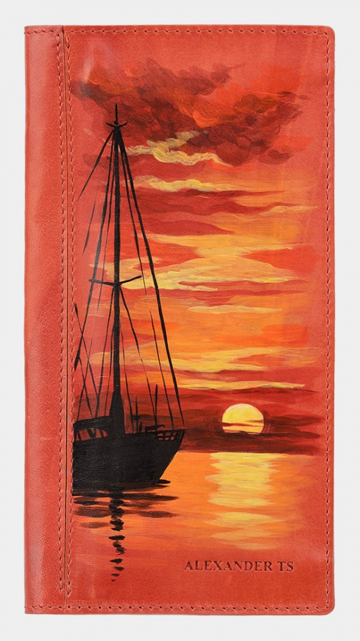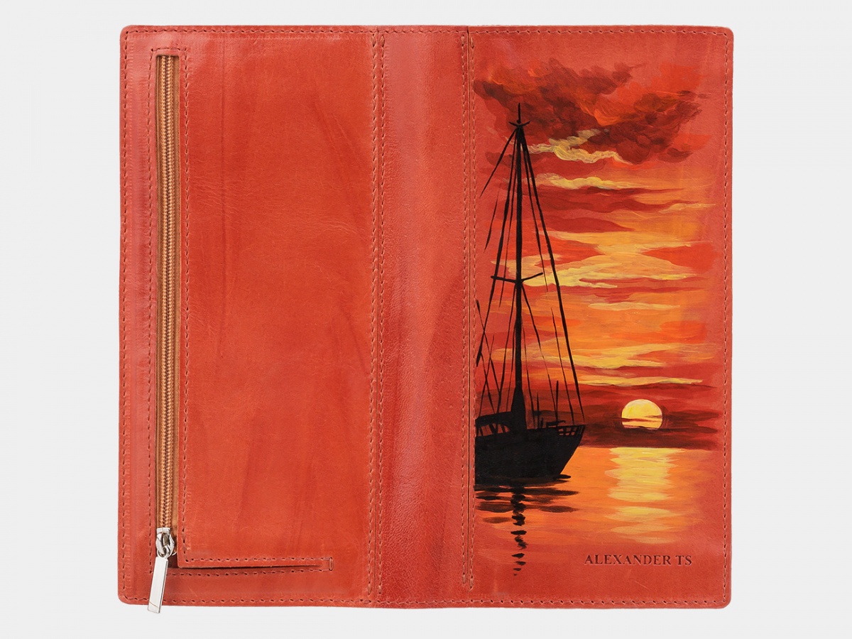Тонкий кошелек с росписью "Рассвет" ручной работы на заказ