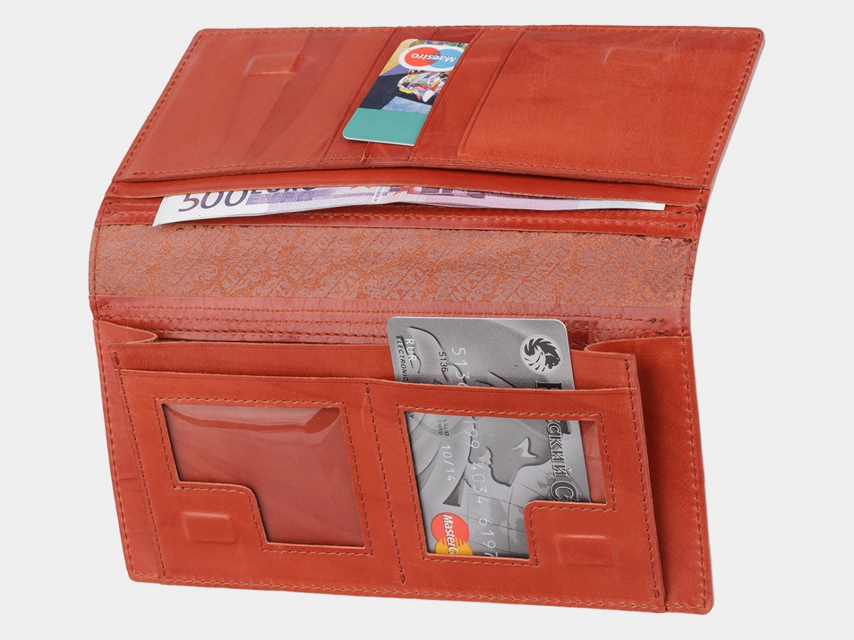 • Продуманная конструкция — полностью раскрывающийся верх кожаного кошелька обеспечивает лёгкий доступ к содержимому