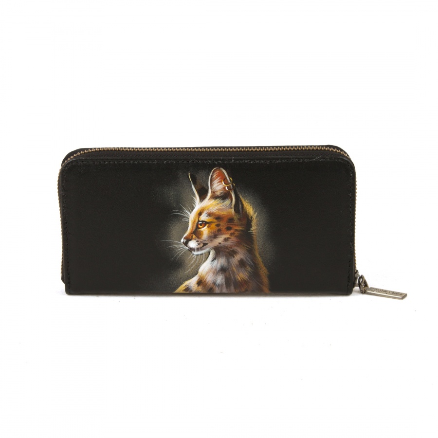 Женский кошелек-портмоне из кожи с росписью "Рысь" ручной работы на заказ | Купить в Sumnizza