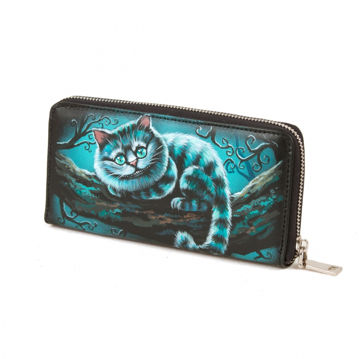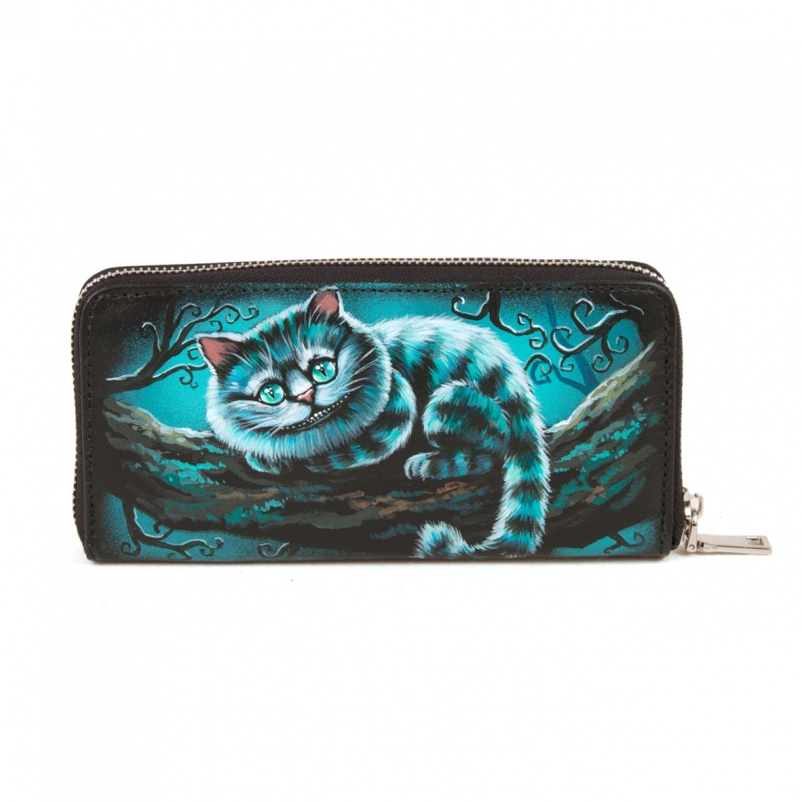 Женское портмоне с рисунком на коже "Чеширский кот"