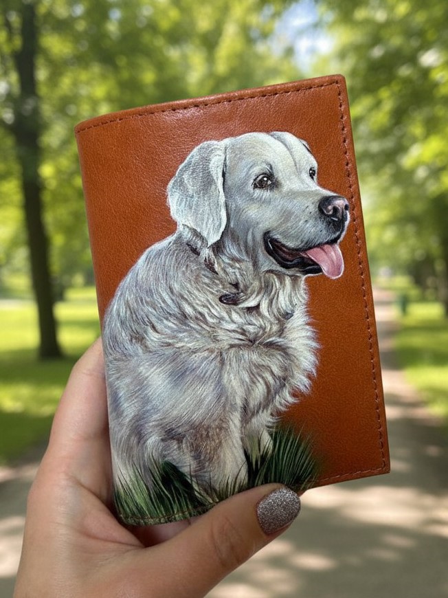 Мужской кошелек для карт и купюр с рисунком ручной работы на заказ - портрет Ретривера | Купить в Москве и Санкт-Петербурге