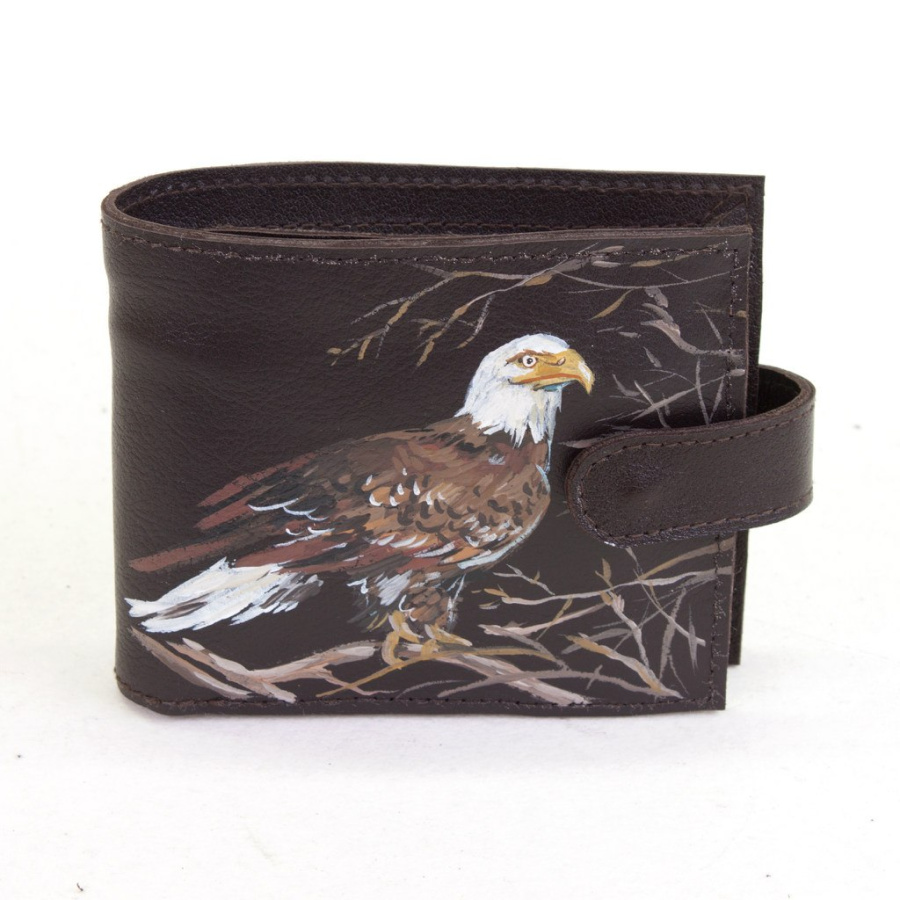 Кожаный кошелек бумажник мужской с оригинальным рисунком ручной работы "Орел" | Купить в интернет-магазине