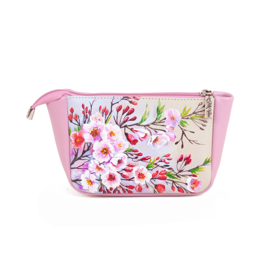 Косметичка дорожная кожаная с рисунком ручной работы на заказ "Яблоневый цвет" - купить в Москве и Санкт-Петербурге