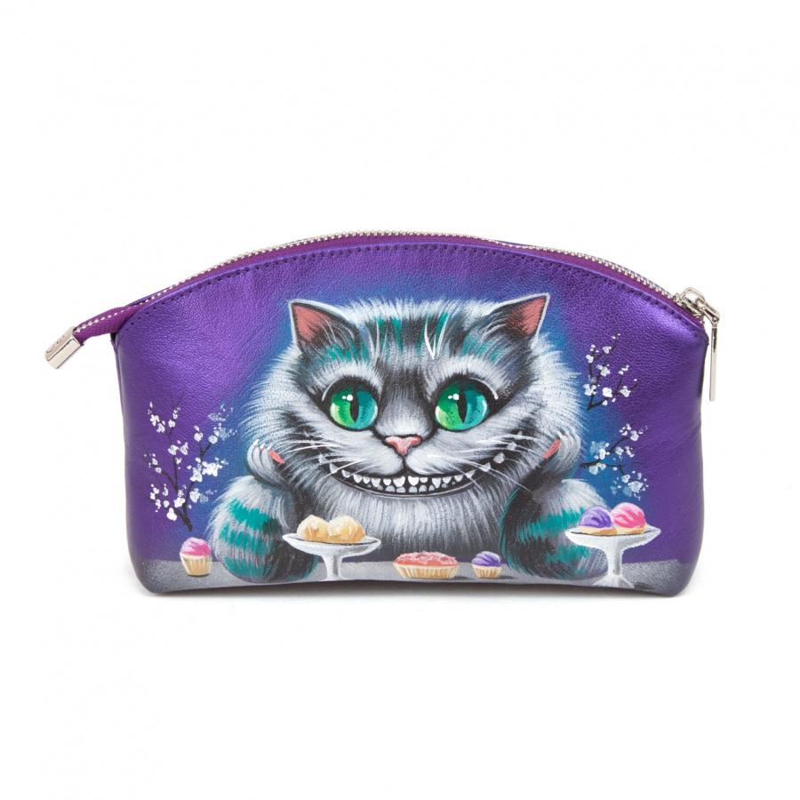 Женская косметичка с рисунком ручной работы "Чеширский кот" - кожаная женская косметичка ручной работы с рисунком на заказ |  Sumnizza
