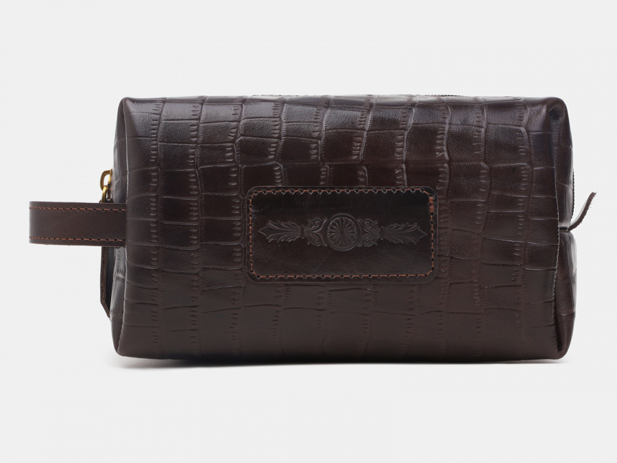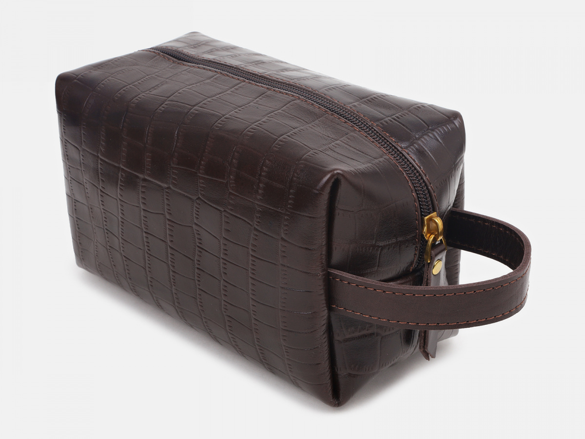 Женская кожаная косметичка "Темный шоколад"