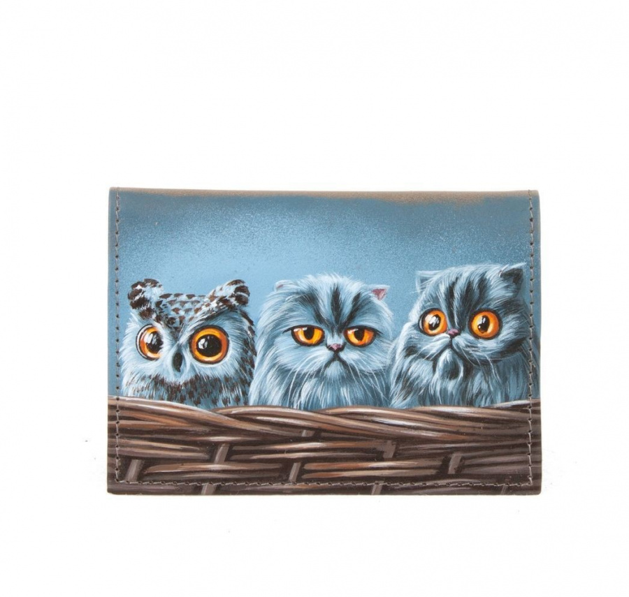 Обложка для паспорта с рисунком котов "Найди лишнего" - кожаный женский кошелек-портмоне ручной работы с рисунком на заказ |  Sumnizza