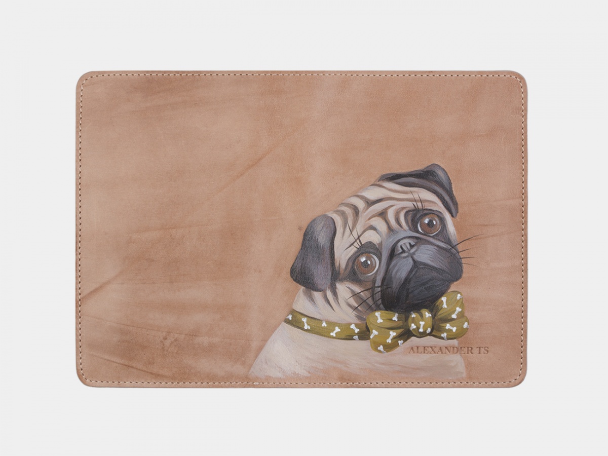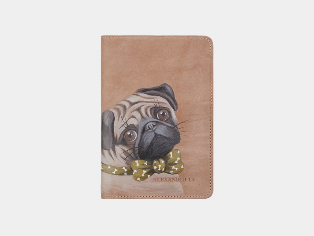 Обложка для паспорта на заказ "Мопс" ручной работы с рисунком на заказ