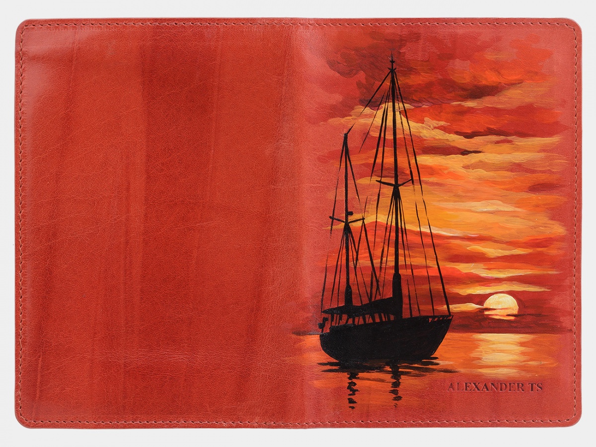 Обложка для паспорта с отделением для карт "Рассвет" с рисунком ручной работы на заказ | Купить