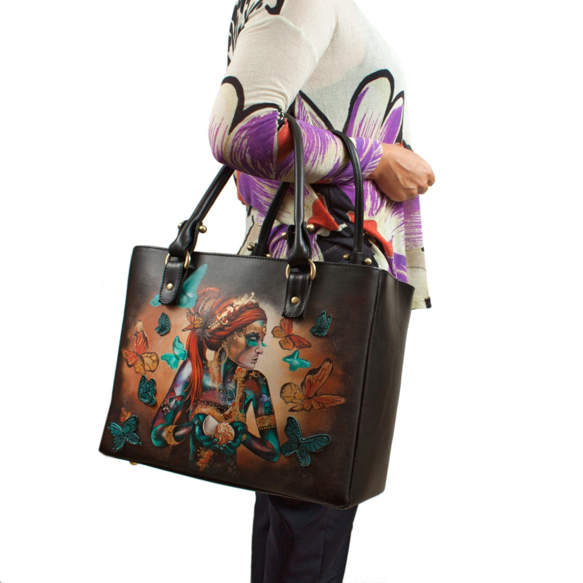 Мы создадим кожаную женскую сумку шоппер специально для вас. Ваша роспись ручной работы сделает ее единственной и неповторимой.