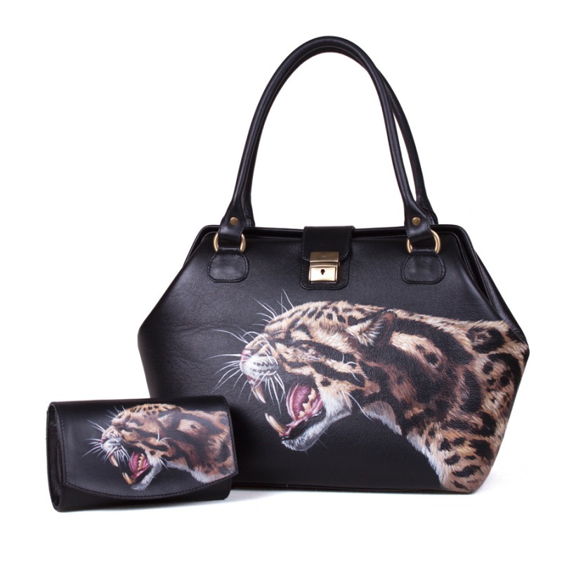 Комплект сумка и кошелек с ручной росписью "Ирбис"
