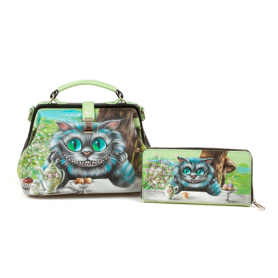 Купить Кожаный комплект «Чеширский кот»: сумка и кошелек с доставкой