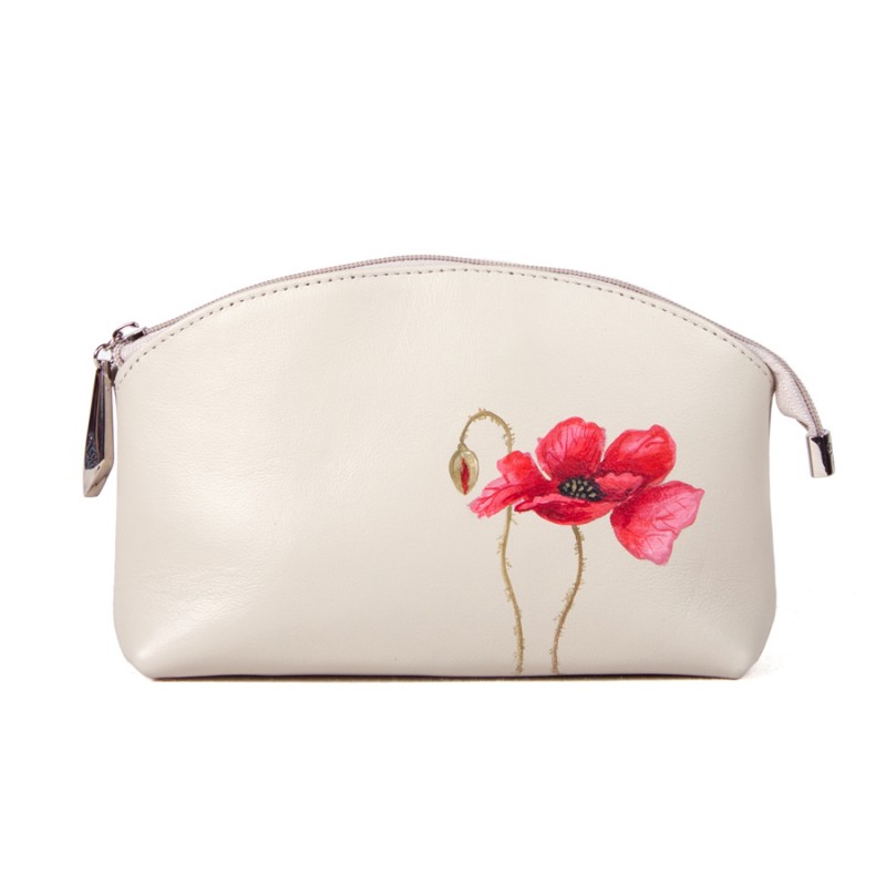 Кожаный комплект «Маки»: саквояж и косметичка с рисунком