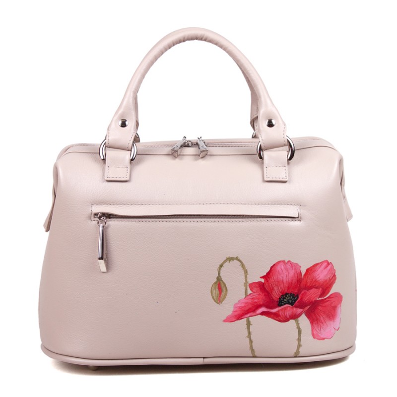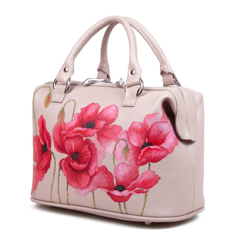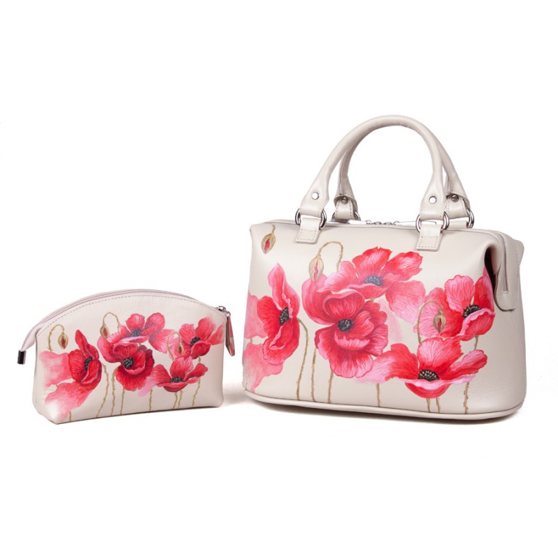 Купить Кожаный комплект «Маки»: саквояж и косметичка с рисунком с доставкой