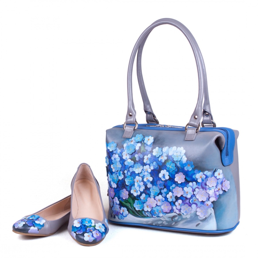 Комплект балетки и кожаный саквояж "Хризантемы" — набор сумка и туфли, рюкзак и сапоги с рисунком ручной работы | Купить в Sumnizza
