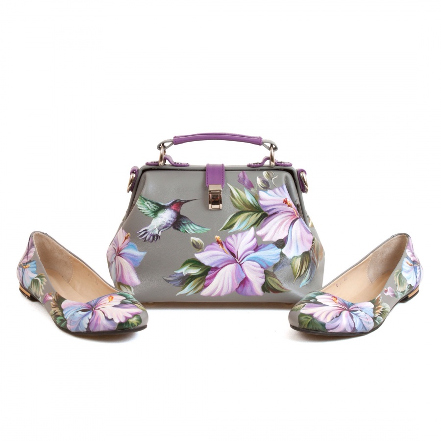 Комплект балетки и кожаный саквояж "Колибри" — набор сумка и туфли, рюкзак и сапоги с рисунком ручной работы | Купить в Sumnizza