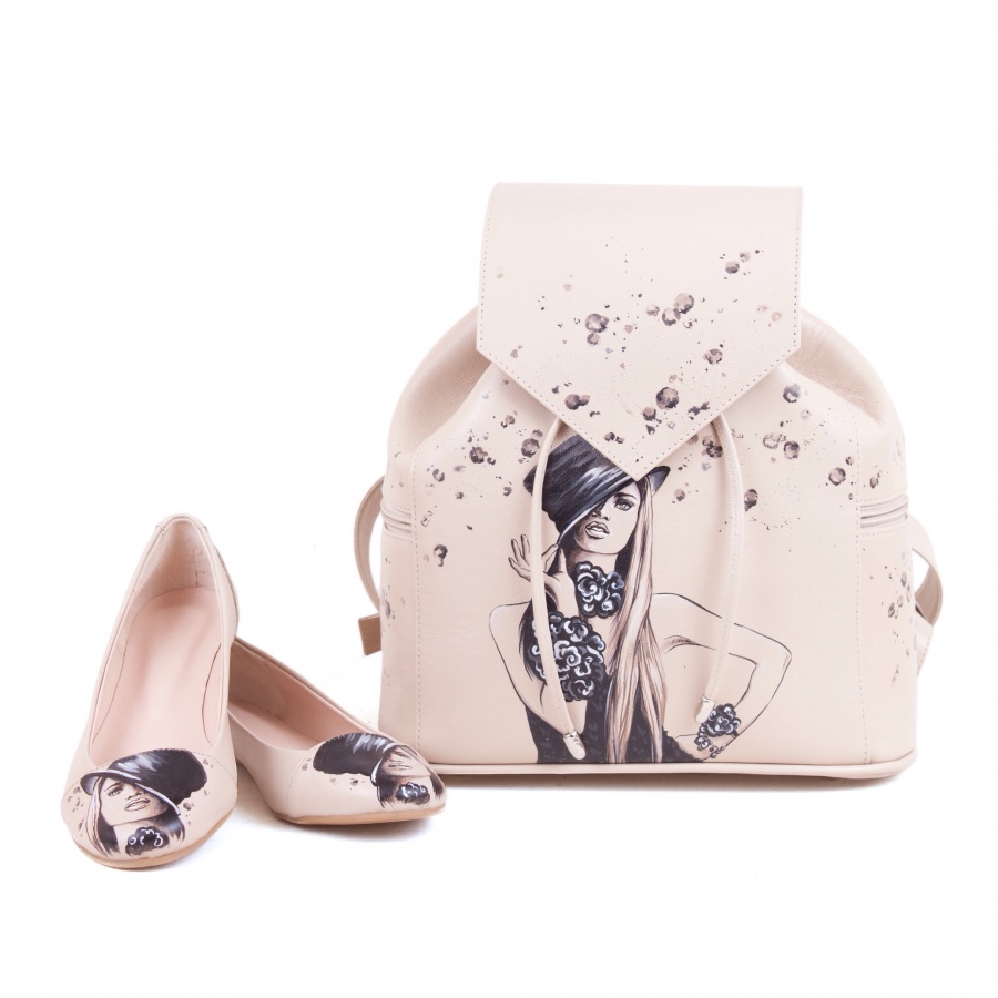 Комплект балетки и рюкзак на шнурке "Кокетка" — набор сумка и туфли, рюкзак и сапоги с рисунком ручной работы | Купить в Sumnizza
