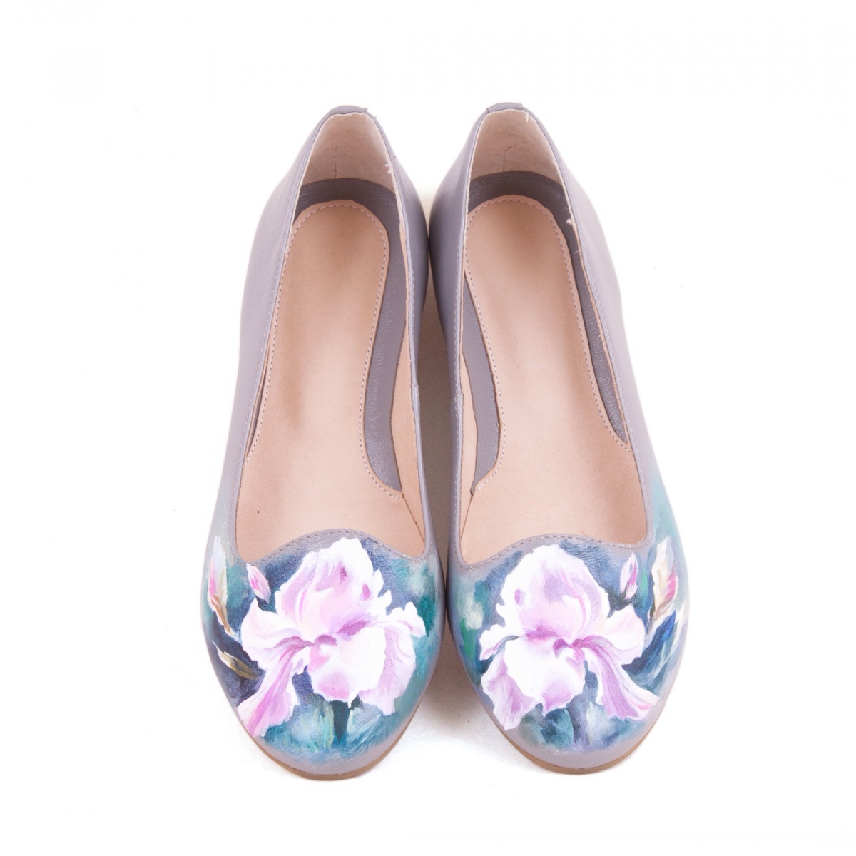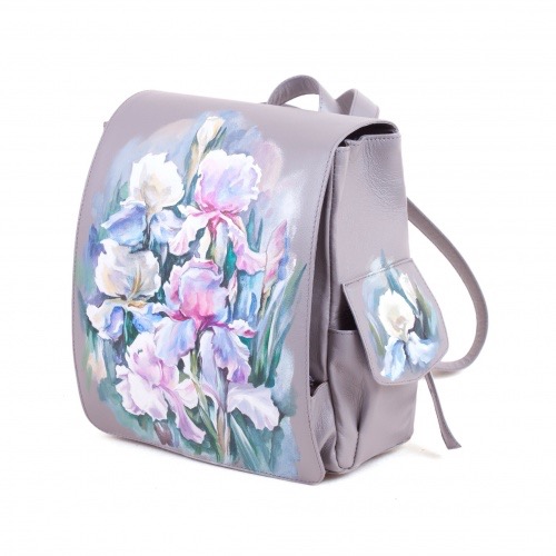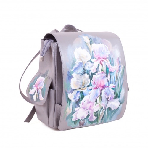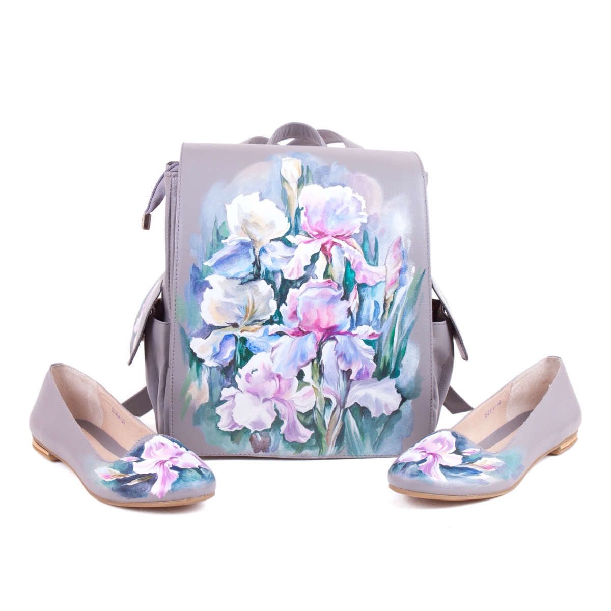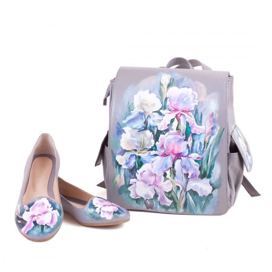 Комплект балетки и рюкзак с карманами "Ирисы" — набор сумка и туфли, рюкзак и сапоги с рисунком ручной работы | Купить в Sumnizza