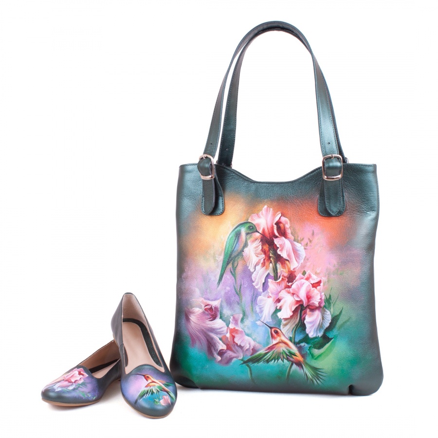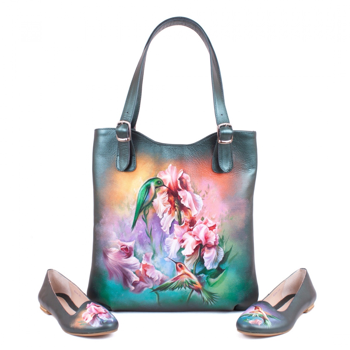 Комплект балетки и сумка-шоппер "Колибри" — набор сумка и туфли, рюкзак и сапоги с рисунком ручной работы | Купить в Sumnizza
