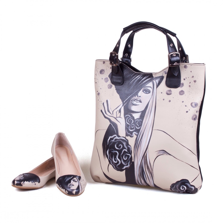 Комплект балетки и женский шоппер "Кокетка" — набор сумка и туфли, рюкзак и сапоги с рисунком ручной работы | Купить в Sumnizza