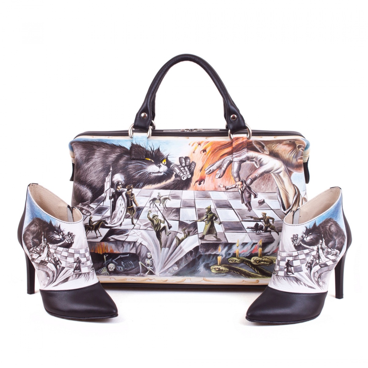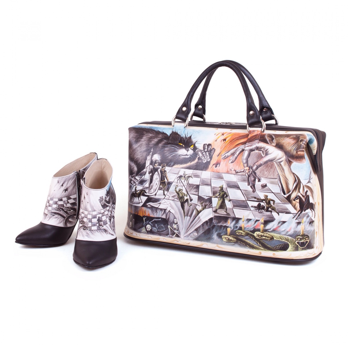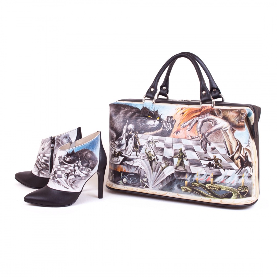 Комплект дамский саквояж и ботильоны "Шахматы" — набор сумка и туфли, рюкзак и сапоги с рисунком ручной работы | Купить в Sumnizza