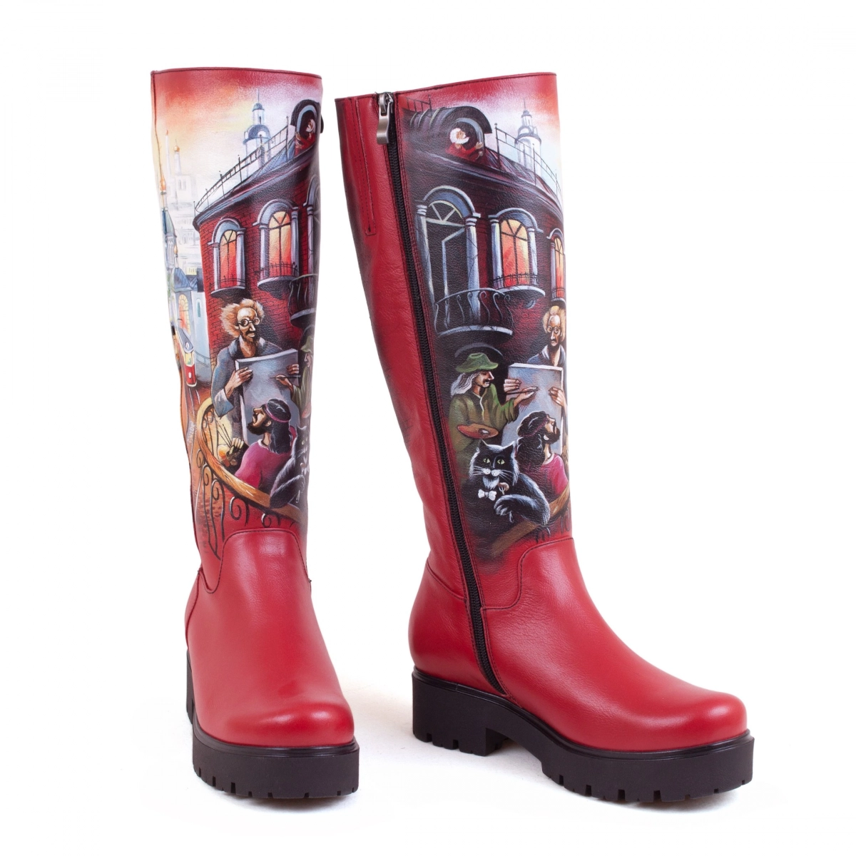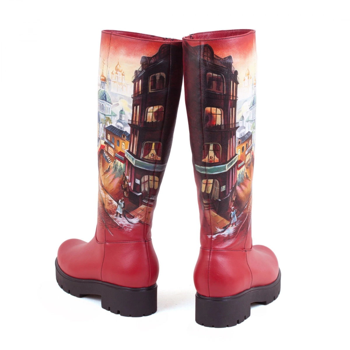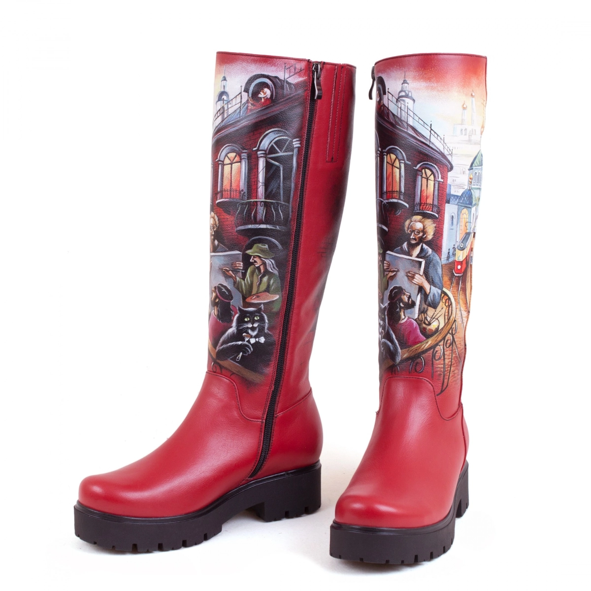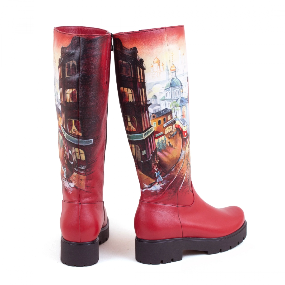 • Стильный рисунок — профессиональные художники расписывают кожаные женские сапоги и рюкзаки акриловыми красками, как холст. Каждая роспись уникальна.