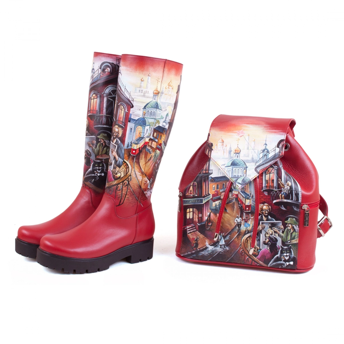 Комплект рюкзак и сапоги "Мастер и Маргарита" — набор сумка и туфли, рюкзак и сапоги с рисунком ручной работы | Купить в Sumnizza
