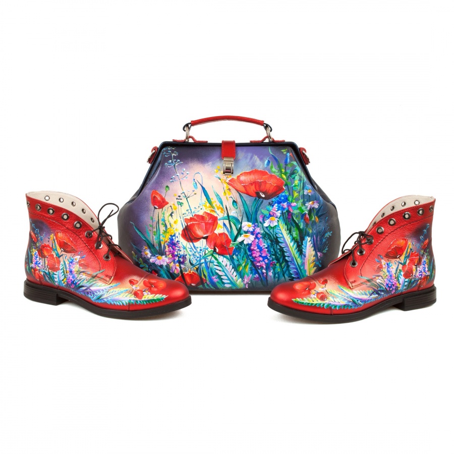 • Стильный рисунок — профессиональные художники расписывают кожаные женские ботинки и сумки акриловыми красками, как холст. Каждая роспись уникальна.