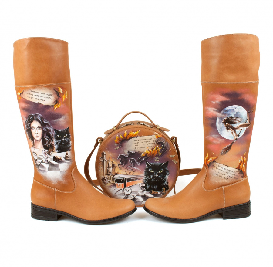 Комплект сапоги и круглая сумка "Мастер и Маргарита" — набор сумка и туфли, рюкзак и сапоги с рисунком ручной работы | Купить в Sumnizza